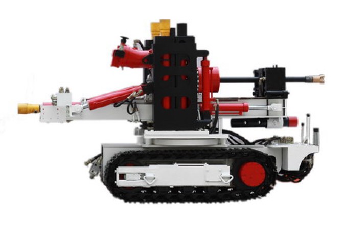 CMS1-4200/55型煤礦用深孔鉆車是新一代履帶行走的探水、探瓦斯、探斷層、放頂、注水等的鉆孔設備,可實現180°水平回轉,垂直升降770mm, +45°~ -90°俯仰角的全方位鉆孔作業,主要用于掘進工作面有防突措施要求的在軟巖或煤層中實施密集形鉆孔,也適用于其他場合。該設備具有結構緊湊、操作靈活、機動性好、全斷面作業、安全性能好、一機多用等特點。除完成探水、探瓦斯工作外,還可鉆進復雜地層。它配套普通擴孔鉆頭等鉆具可進行回轉鉆進。