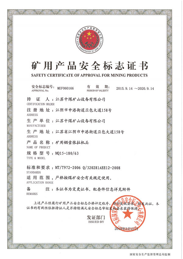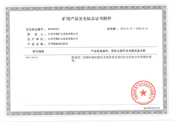 MQ15(18)-180/63礦用錨索張拉機具利用壓縮空氣作為氣動齒輪馬達的動力源帶動油泵總成工作輸出高達63MPa液壓油供給張拉千斤頂。適用于安全要求所必須的場合,如具有爆炸性瓦斯的煤礦井下作業。總體結構緊湊、體積小、重量輕、運轉平穩、壓力波動小等特點,是煤礦井下進行錨索支護的設備,使用它可顯著提高煤礦錨索支護的效率、質量和作業安全性。也可用于其他行業做壓力油供給設備。