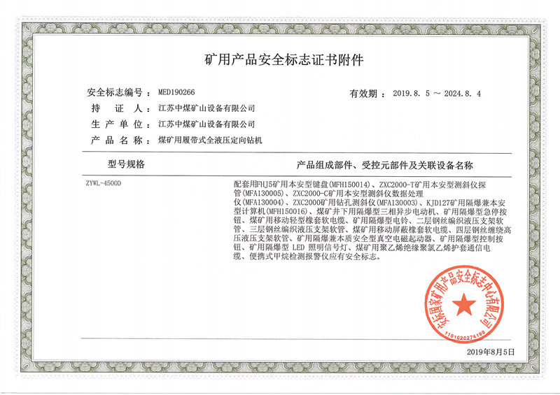 ZYWL—4500D 煤礦用履帶式全液壓定向鉆機是以電機為動力帶動液壓泵,液壓馬達驅動履帶行走、液壓馬達驅動鉆具,在軟巖或煤層中定向鉆探水、探瓦斯孔的設備。配套ZXC2000 隨鉆測量裝置由KJD127 礦用隔爆兼本安型計算機、ZXC2000-T 隨鉆測量探管、ZXC2000-C 礦用本安型測量數據處理器及FHJ5 礦用本安型鍵盤組成。可選配FHS16/5礦用本安型數據存儲器用于數據轉移。ZYWL—4500D 型煤礦用履帶式全液壓定向鉆機是新一代履帶行走的探水、探瓦斯、探斷層、放頂、注水等的鉆孔設備,主要用于掘進工作面有防突措施要求的在軟巖或煤層中實施密集形鉆孔,也適用于其他場合。該設備具有結構緊湊、操作靈活、機動性好、全斷面作業、安全性能好、一機多用等特點。除完成探水、探瓦斯工作外,還可鉆進復雜地層。它配套普通擴孔鉆頭等鉆具可進行回轉鉆進。