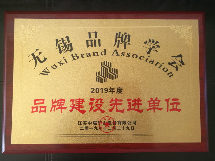 2019年12月29日,江蘇中煤礦山設備有限公司被無錫品牌學會,評為2019年度“品牌建設先進單位”榮譽稱號。
