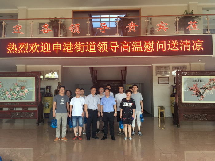 2020年8月13日上午,申港街道嚴書記來我公司對高溫下仍然堅守在生產(chǎn)一線的工人表示慰問。