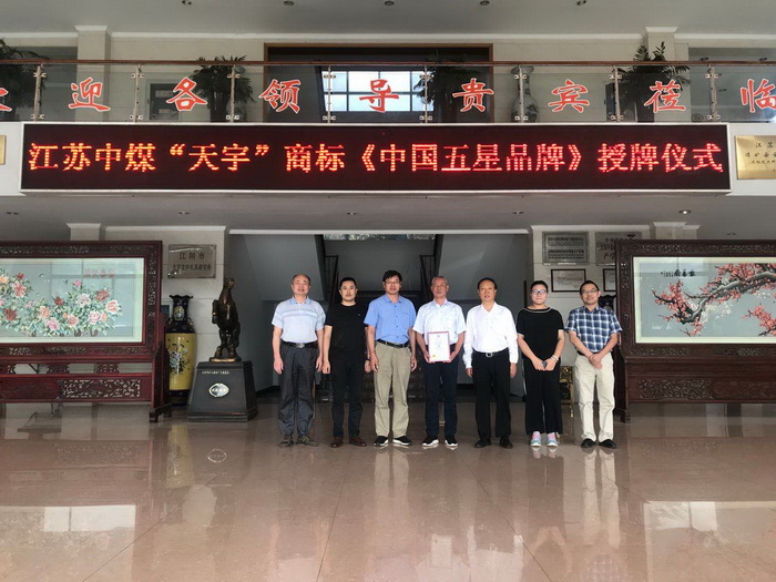熱烈祝賀江蘇中煤“天宇”商標榮獲《中國五星品牌》認證